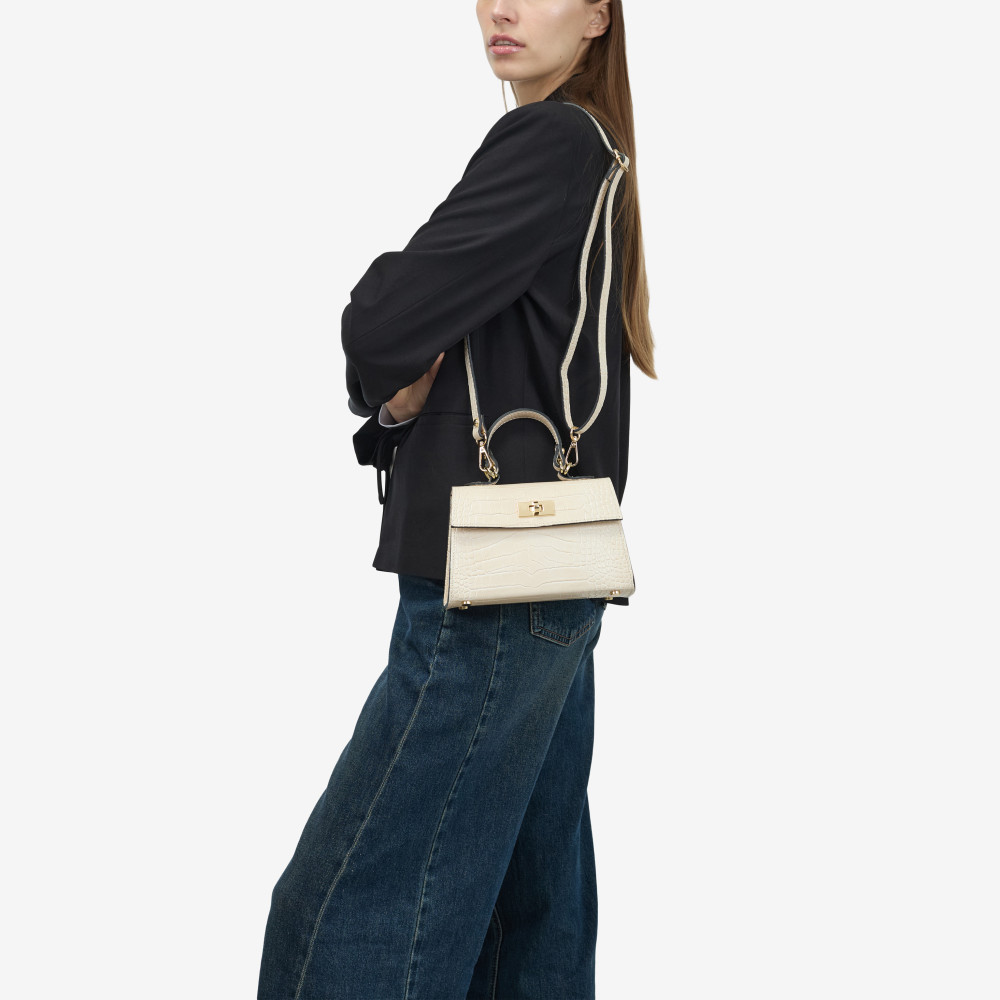 Сумка через плече (крос-боді) маленька Regina Notte Beige Шкіра тиснена "Крокодил" - 287478