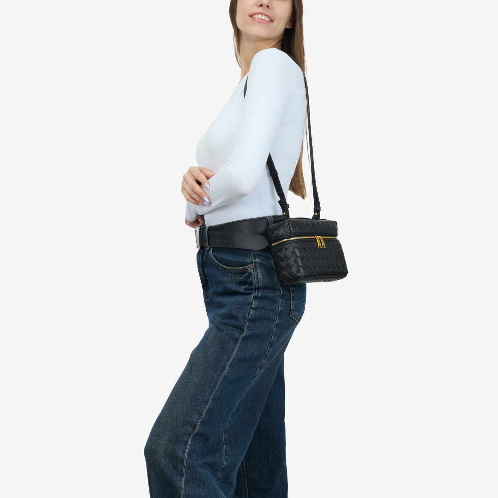 Сумка через плече (крос-боді) маленька Regina Notte Black Плетена шкіра - 288147