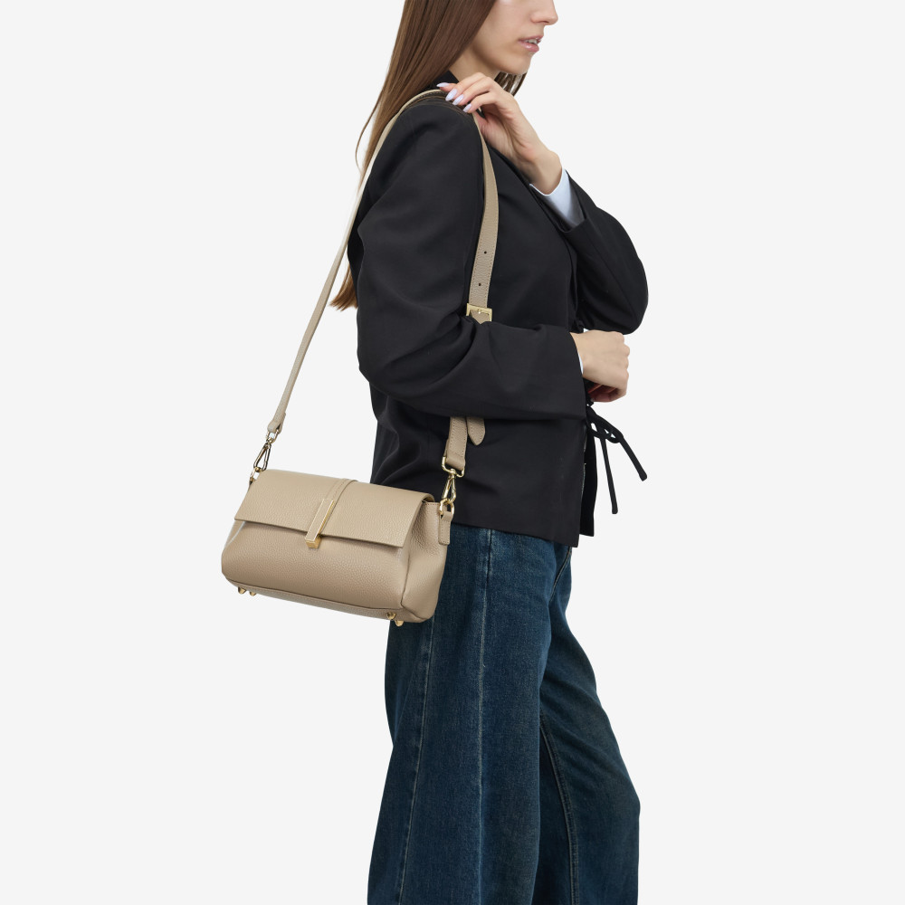 Сумка через плече (крос-боді) маленька Regina Notte Light taupe Шкіра флотар - 287249