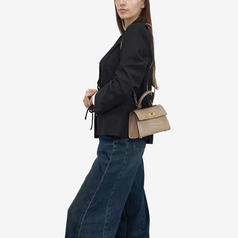 Сумка через плече (крос-боді) маленька Regina Notte Light taupe Шкіра тиснена "Крокодил" - 287508
