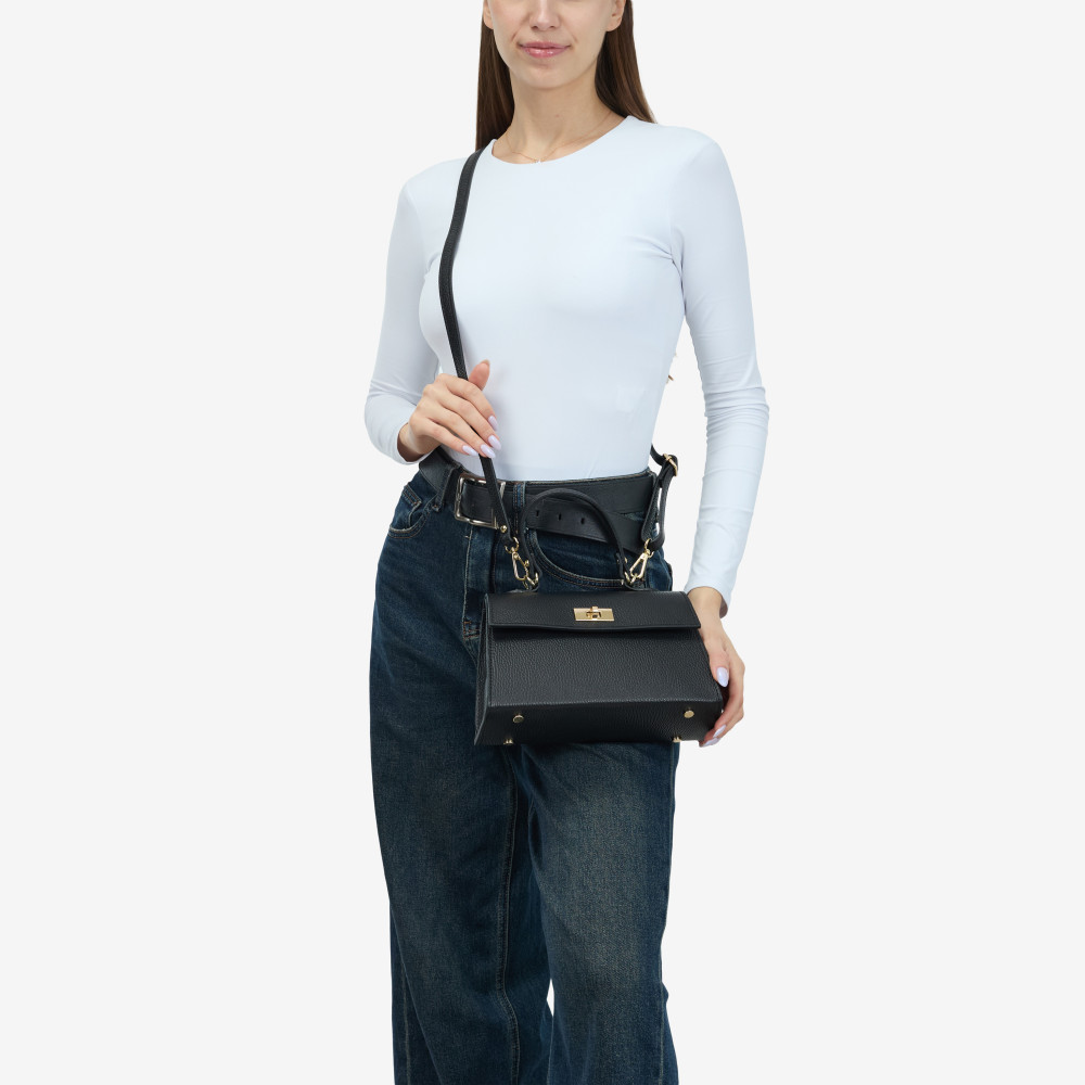 Сумка через плече (крос-боді) середня Regina Notte Black Шкіра флотар - 287515