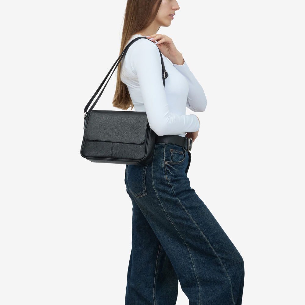 Сумка через плече (крос-боді) середня Regina Notte Black Шкіра флотар - 287744
