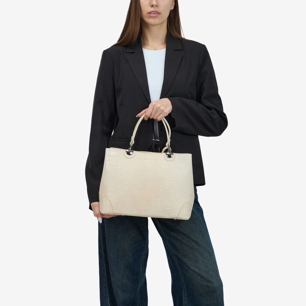 Тоут середній Regina Notte Beige Шкіра тиснена "Крокодил" - 287720
