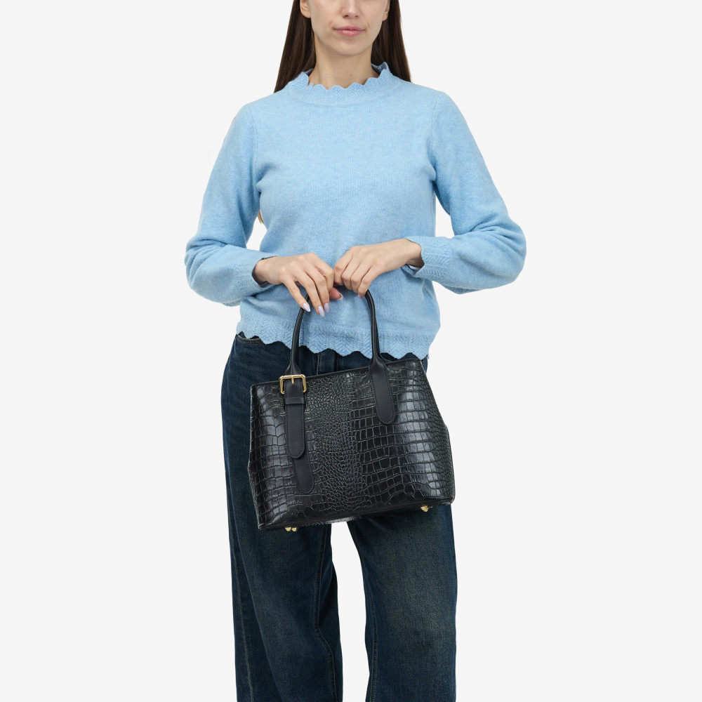 Тоут середній Regina Notte Black Шкіра тиснена "Крокодил" - 287386