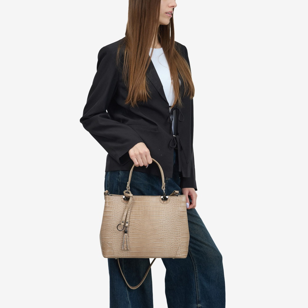 Тоут середній Regina Notte Light taupe Шкіра тиснена "Крокодил" - 287737
