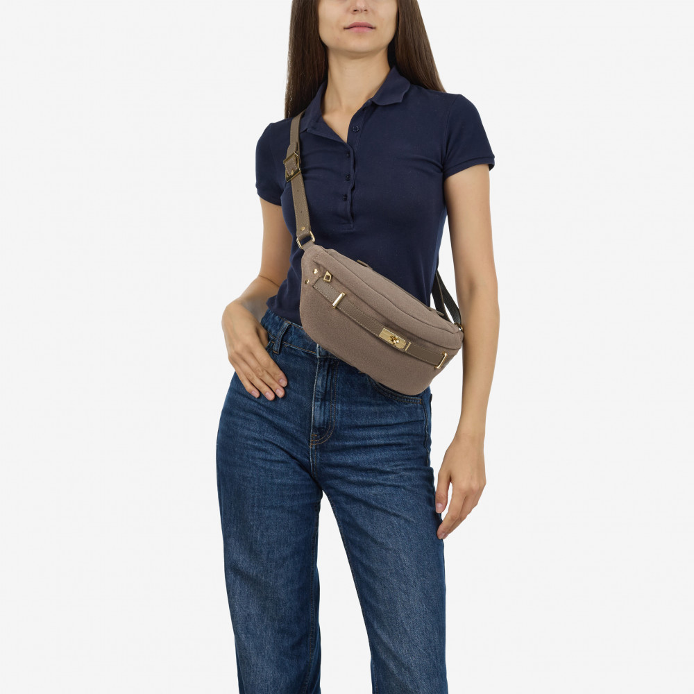 Поясна сумка (Сумка-банан) середня Regina Notte Dark taupe Шкіра флотар, Замша - 277424