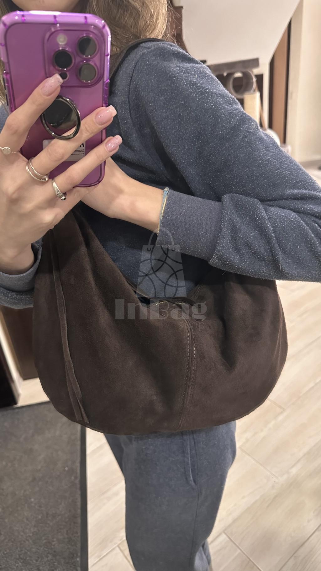 Сумка фантастична. Ідеальний розмір. Дуже приємна на дотик замша. Цупка підкладка. Містка.