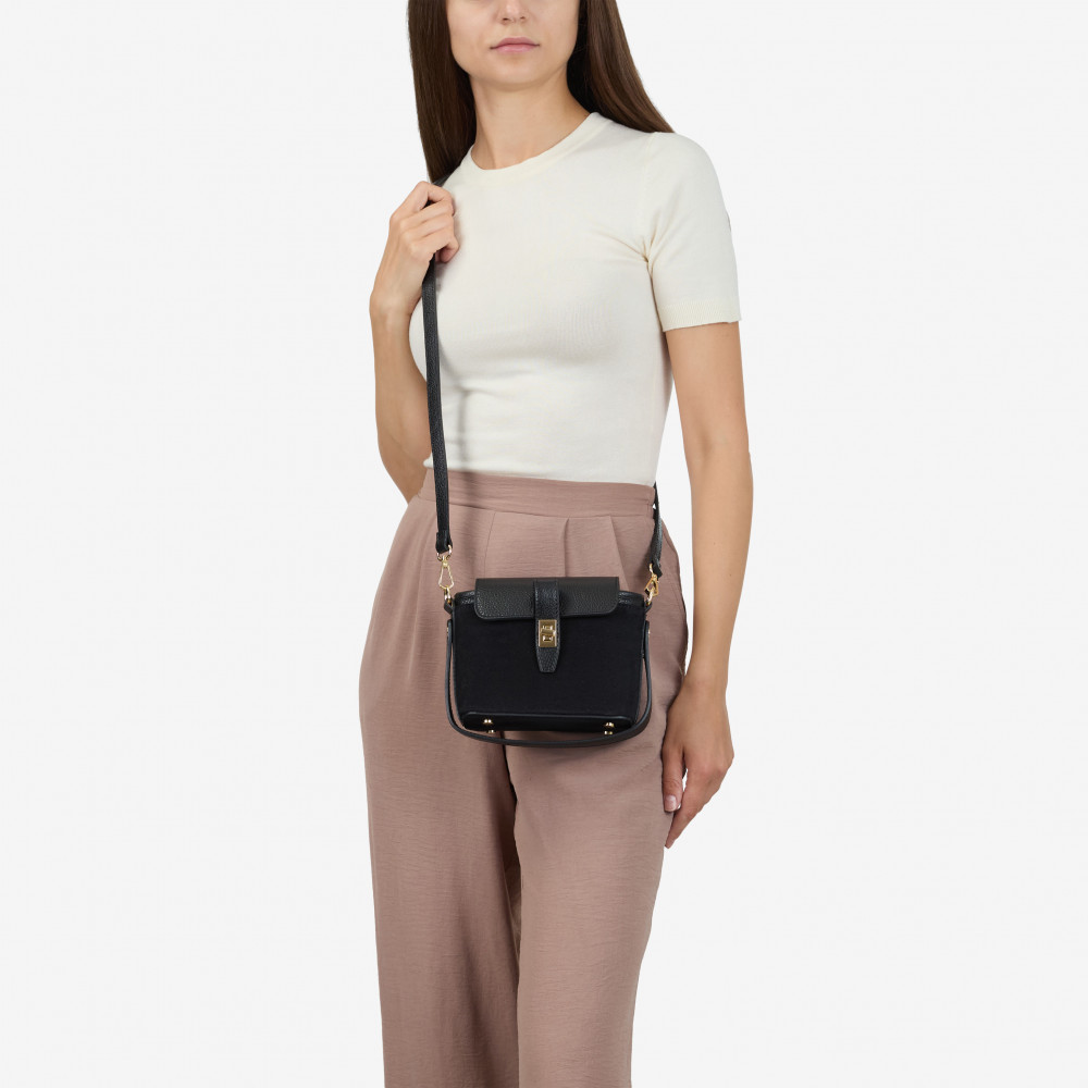 Сумка через плечо (кросс-боди) маленькая Regina Notte Black Кожа флотар, Замша - 276687