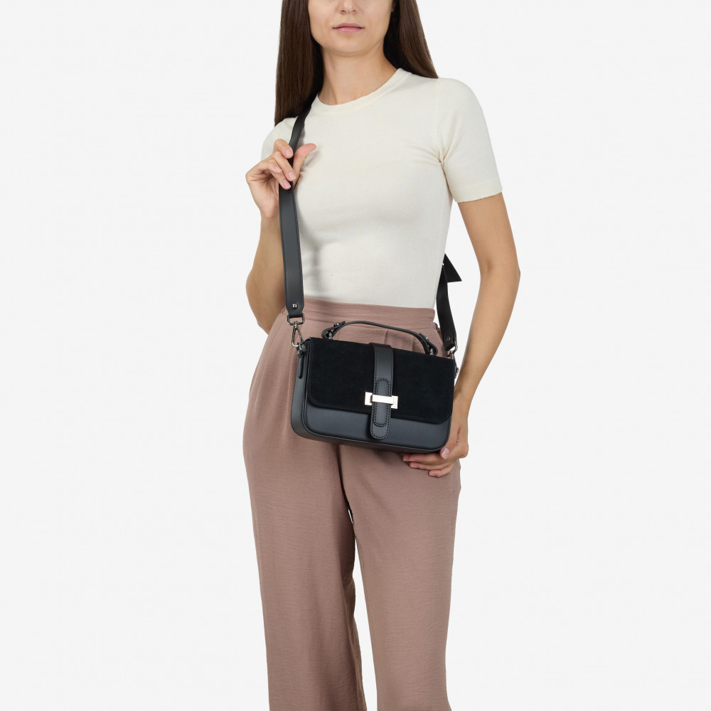 Сумка через плечо (кросс-боди) средняя Regina Notte Black Кожа гладкая, Замша - 276540