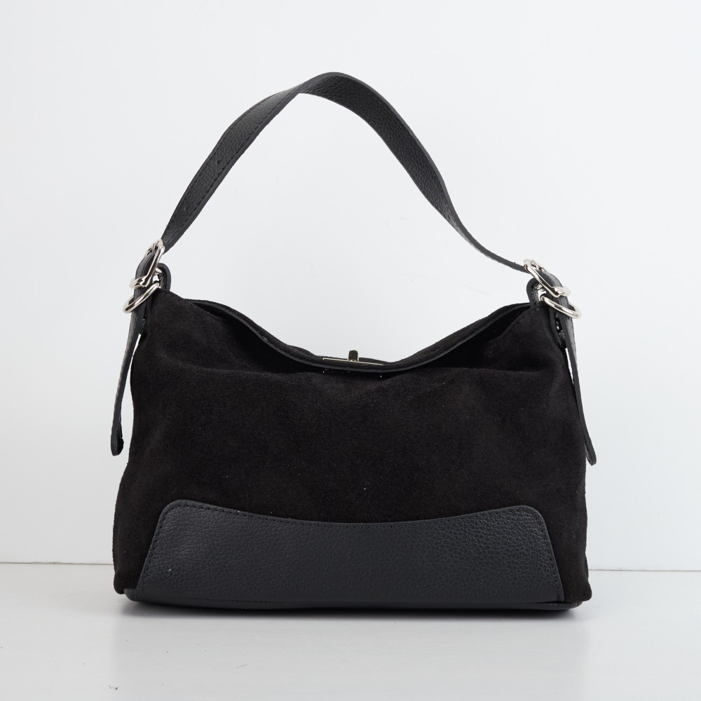 Сумка через плечо (кросс-боди) средняя Regina Notte Black Кожа флотар, Замша - 278360