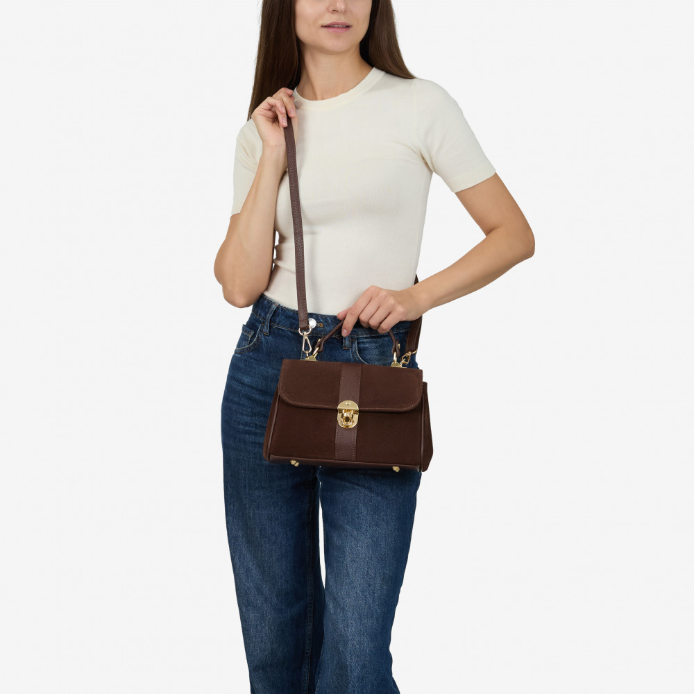 Сумка через плечо (кросс-боди) средняя Regina Notte Brown Кожа флотар, Замша - 276182