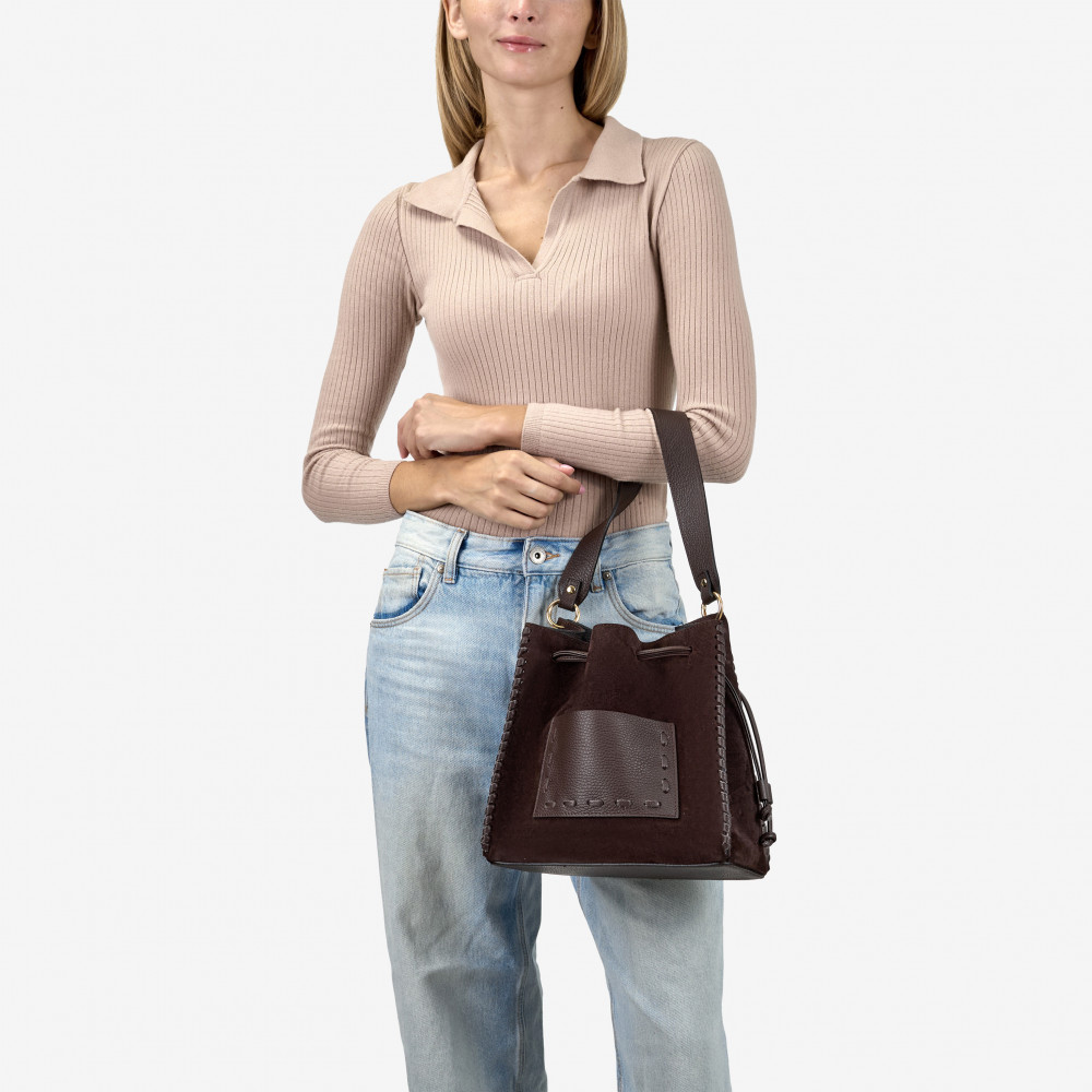 Сумка через плечо (кросс-боди) средняя Regina Notte Chocolate Кожа флотар, Замша - 275161