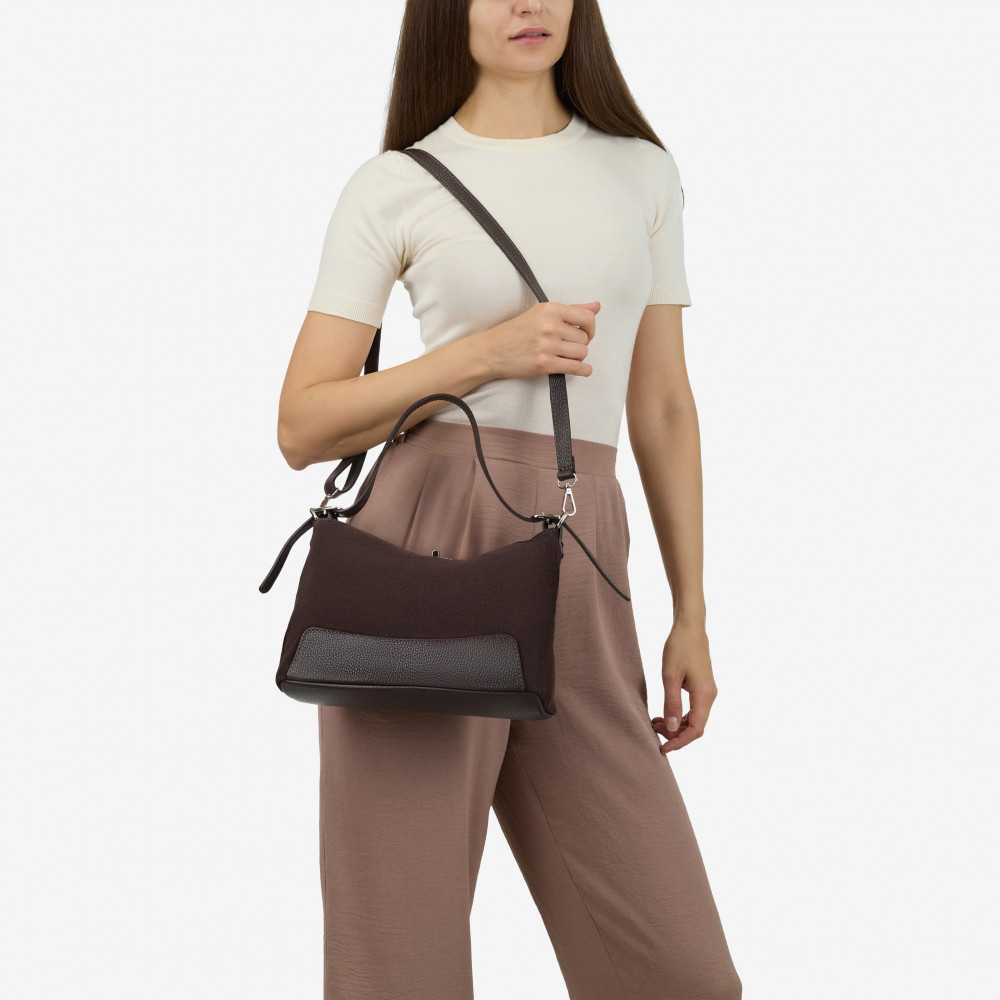 Сумка через плечо (кросс-боди) средняя Regina Notte Chocolate Кожа флотар, Замша - 278377