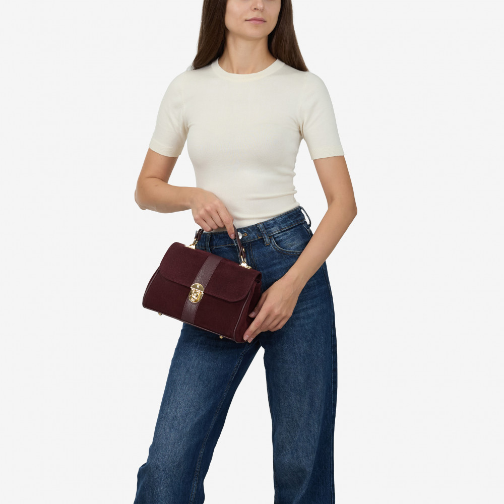 Сумка через плечо (кросс-боди) средняя Regina Notte Vinous Кожа флотар, Замша - 276199
