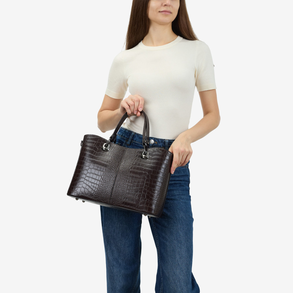 Тоут большой Regina Notte Chocolate Кожа тисненная "Крокодил" - 277561