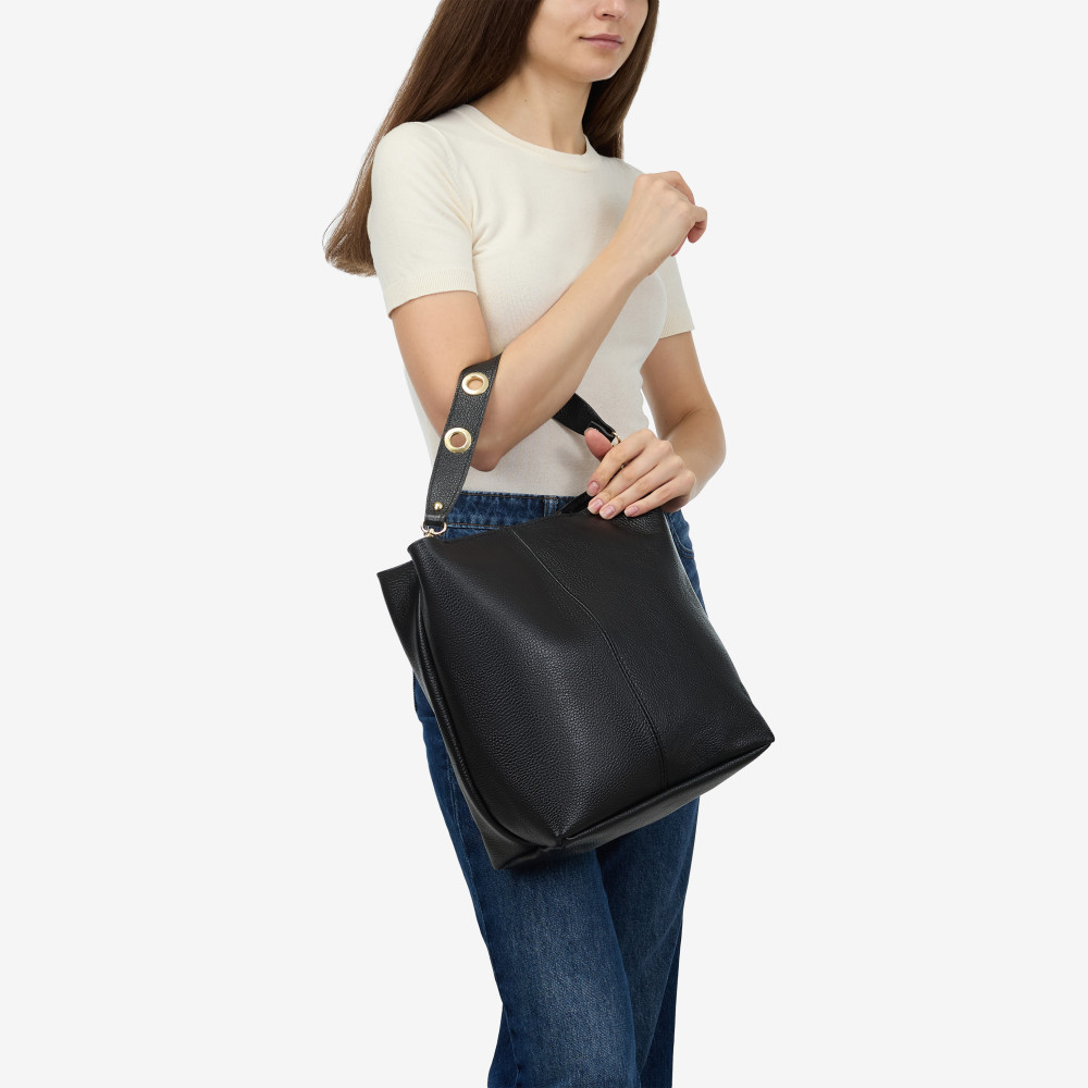 Шоппер середній Regina Notte Black Шкіра флотар - 284477