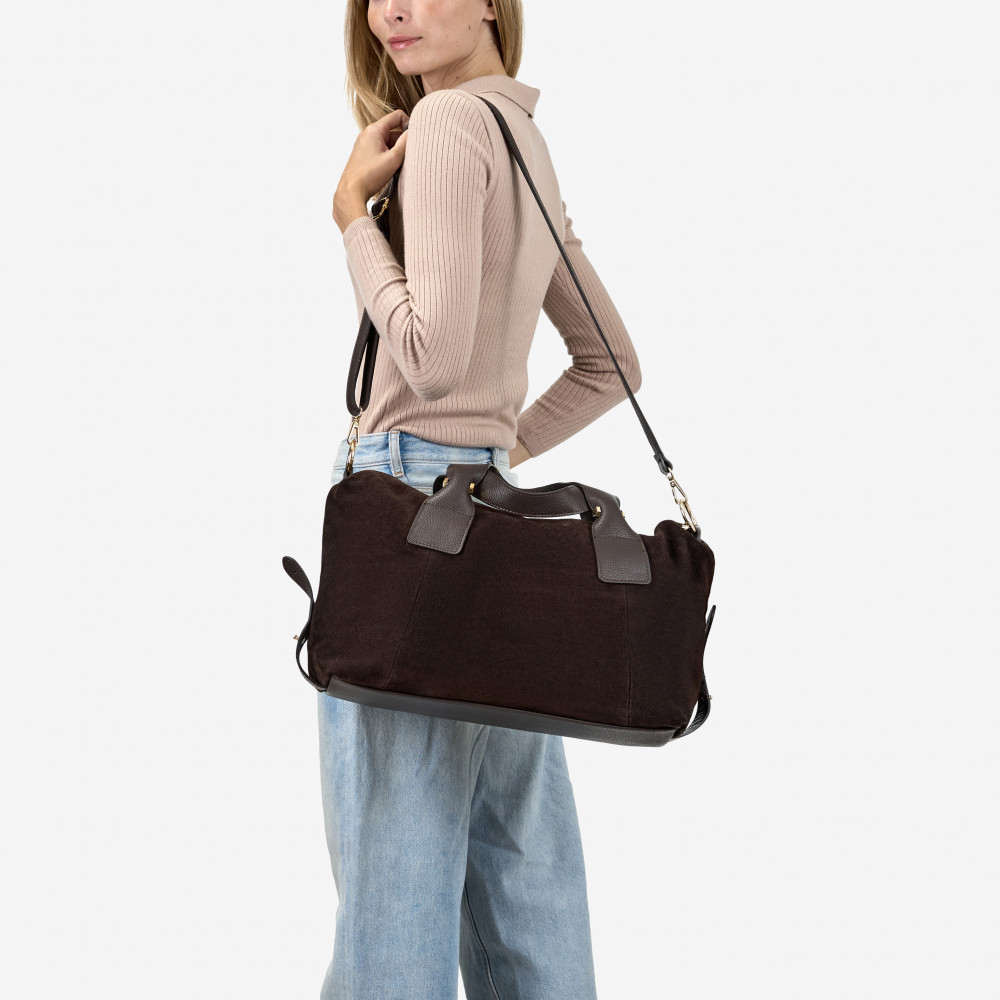 Шоппер великий Regina Notte Chocolate Шкіра флотар, Замша - 274201