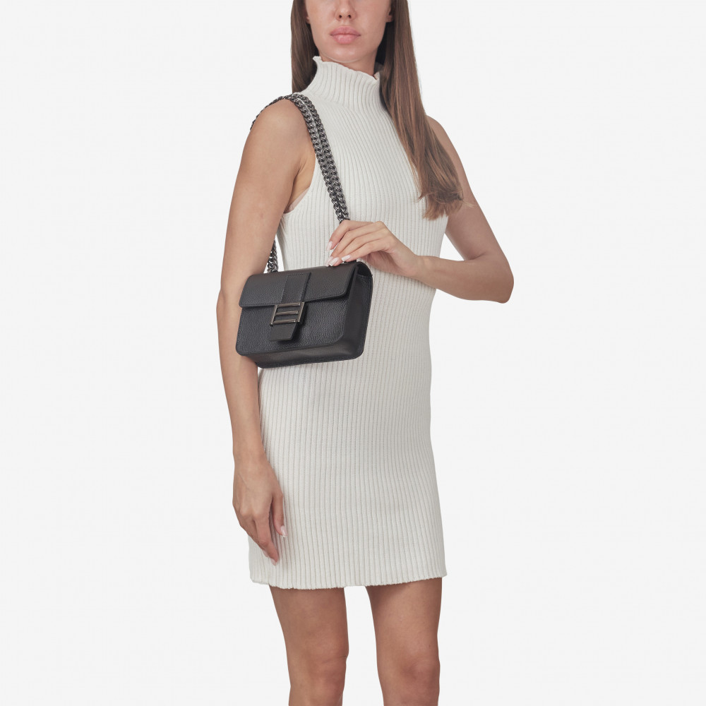 Сумка через плече (крос-боді) маленька Regina Notte Black Шкіра флотар - 215242