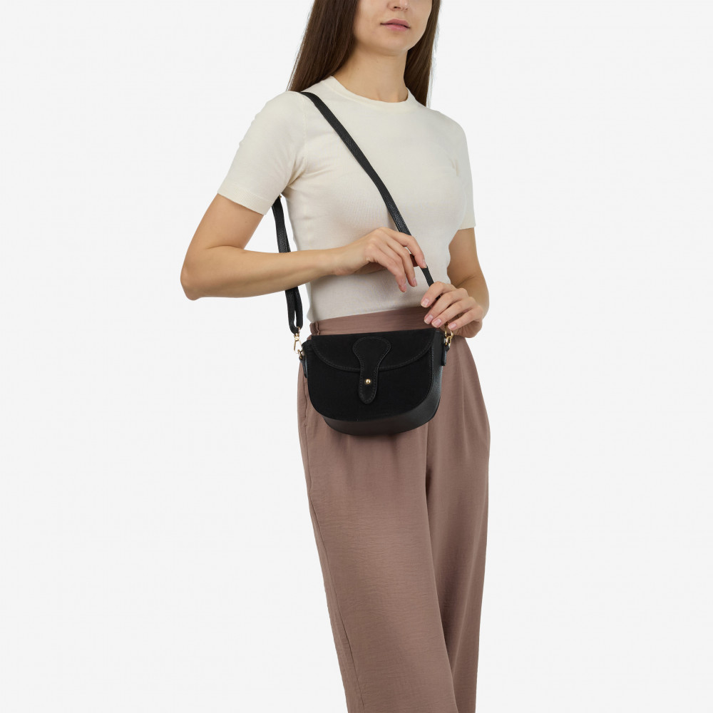 Сумка через плече (крос-боді) маленька Regina Notte Black Шкіра флотар, Замша - 277615