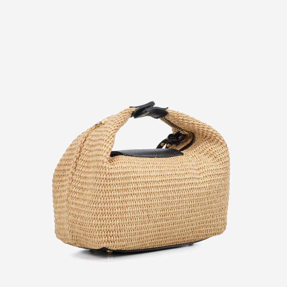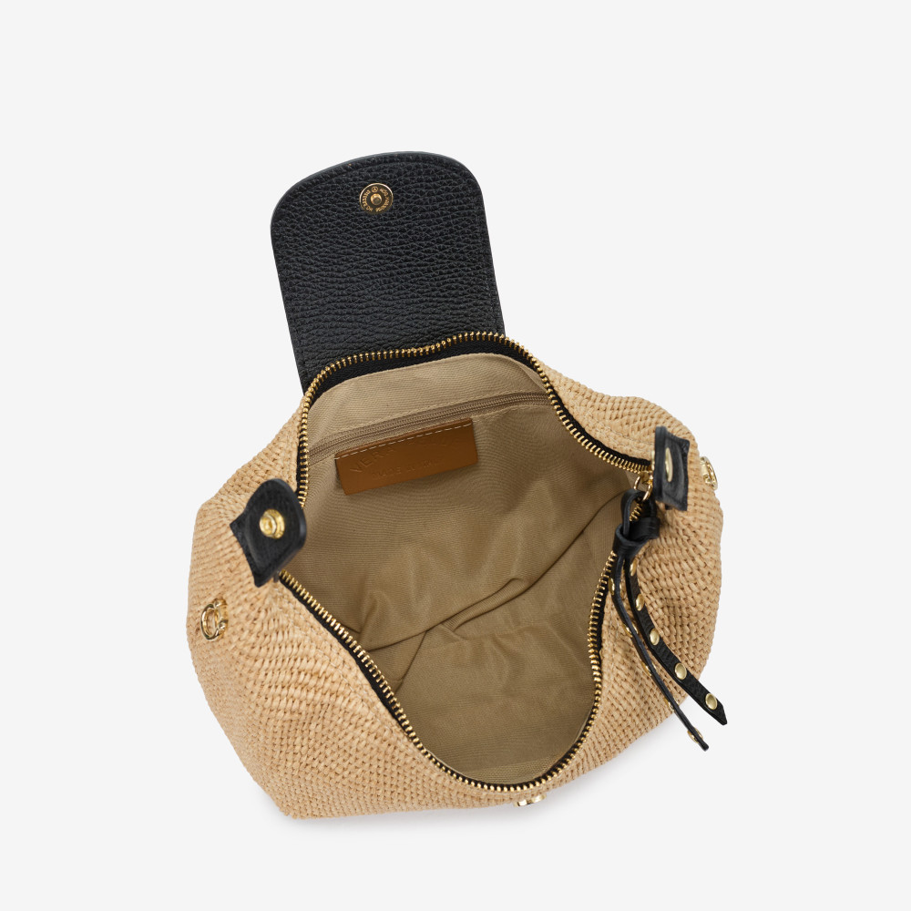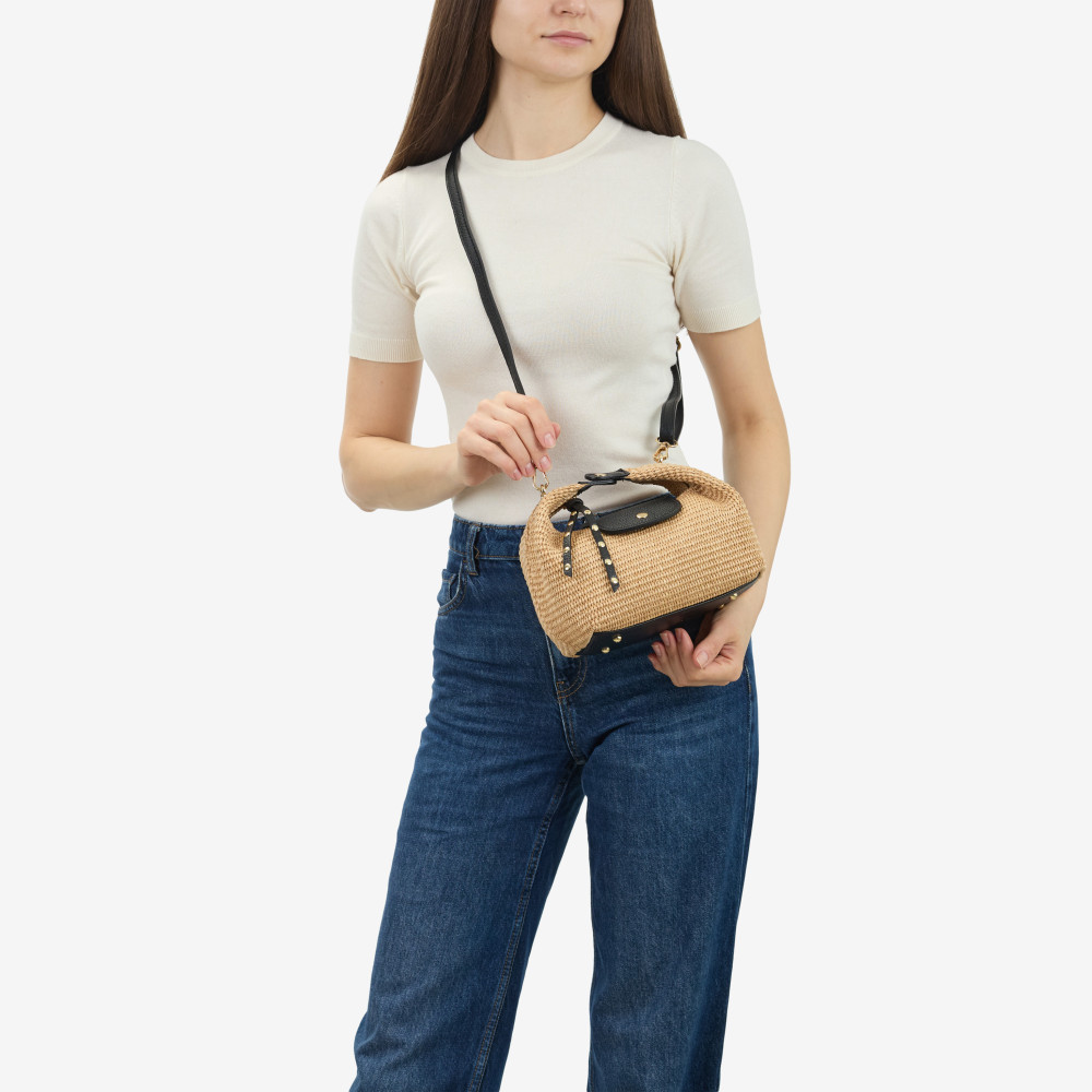 Сумка через плече (крос-боді) маленька Regina Notte Black Шкіра флотар, Плетена паперова солома - 289090