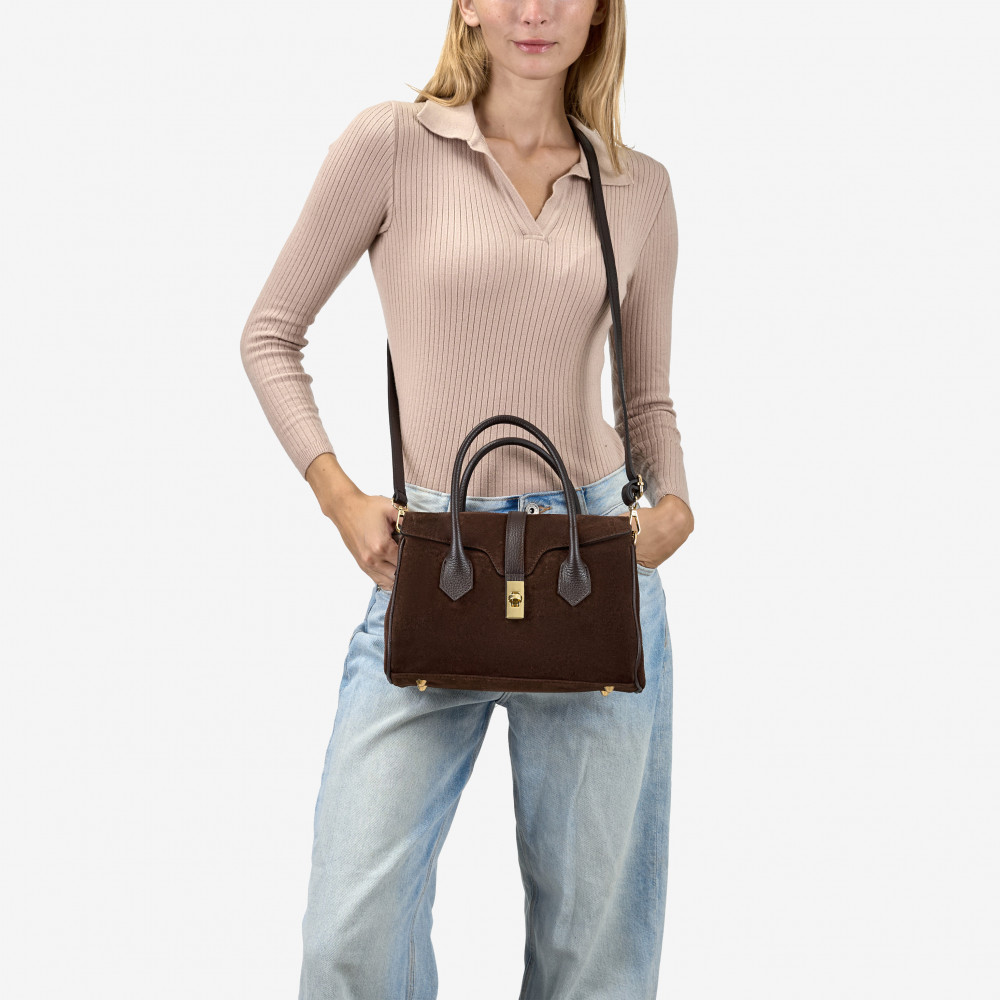 Сумка через плече (крос-боді) маленька Regina Notte Chocolate Шкіра флотар, Замша - 275215