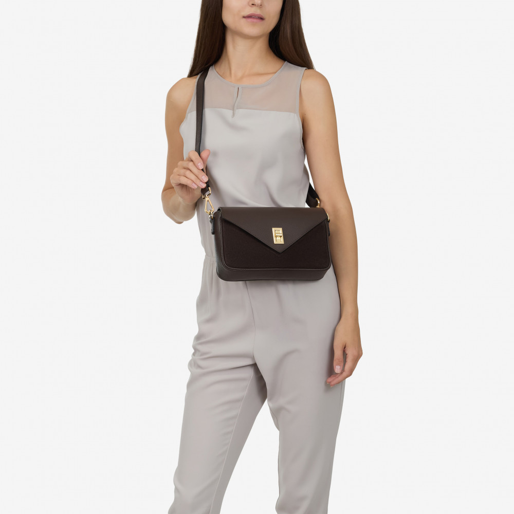 Сумка через плече (крос-боді) маленька Regina Notte Chocolate Шкіра флотар, Замша - 276250