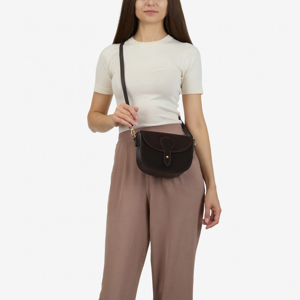 Сумка через плече (крос-боді) маленька Regina Notte Chocolate Шкіра флотар, Замша - 277639