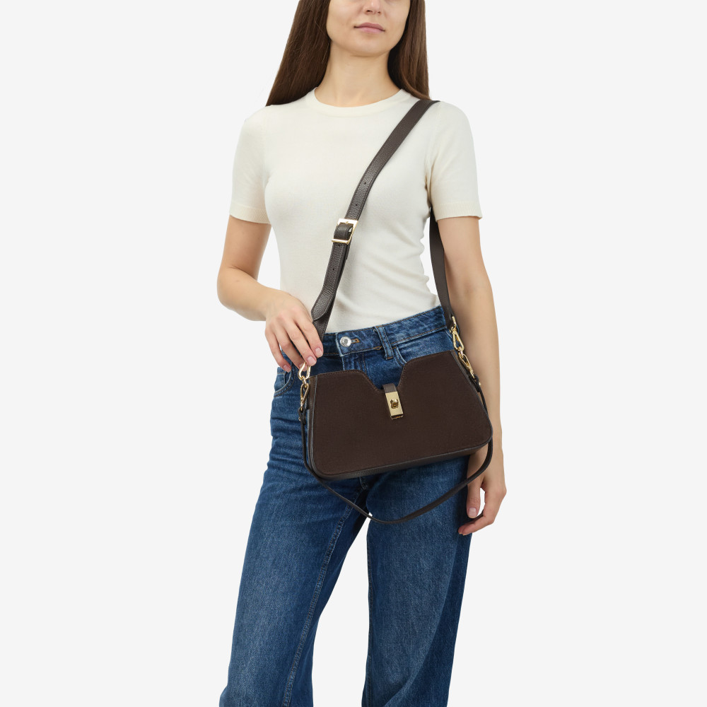 Сумка через плече (крос-боді) маленька Regina Notte Chocolate Шкіра флотар, Замша - 284200