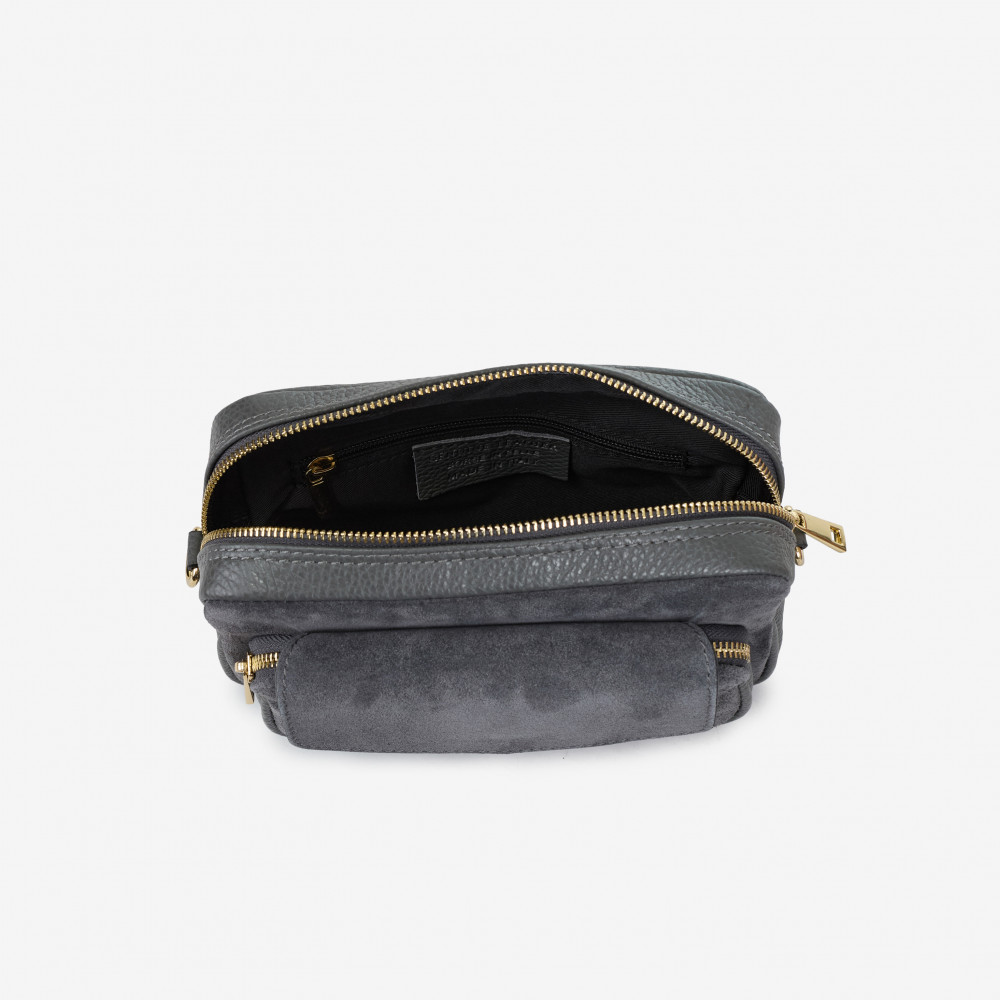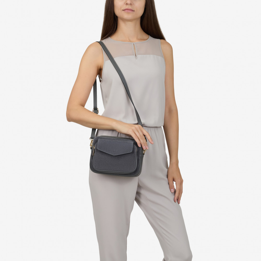 Сумка через плече (крос-боді) маленька Regina Notte Dark grey Шкіра флотар, Замша - 275932