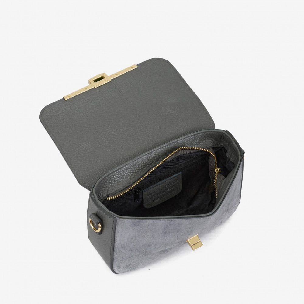 Сумка через плече (крос-боді) маленька Regina Notte Dark grey Шкіра флотар, Замша - 276311
