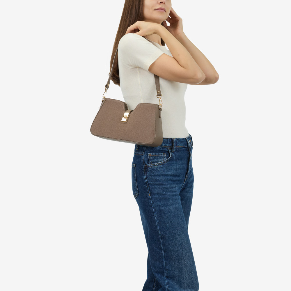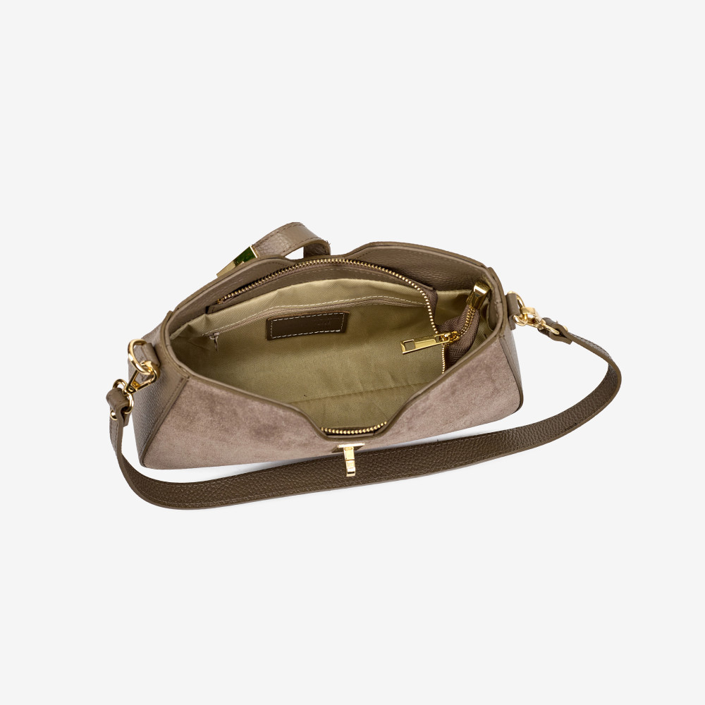Сумка через плече (крос-боді) маленька Regina Notte Dark taupe Шкіра флотар, Замша - 284224