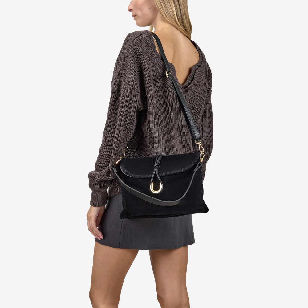 Сумка через плече (крос-боді) середня Regina Notte Black Шкіра флотар, Замша - 274157