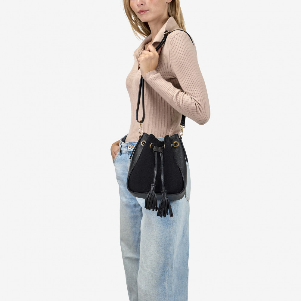 Сумка через плече (крос-боді) середня Regina Notte Black Шкіра флотар, Замша - 274553