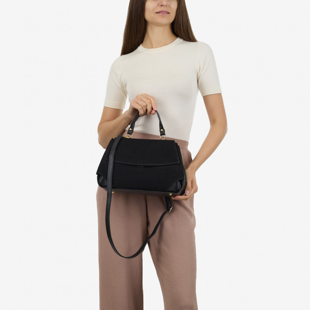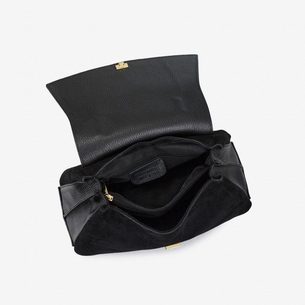 Сумка через плече (крос-боді) середня Regina Notte Black Шкіра флотар, Замша - 275086