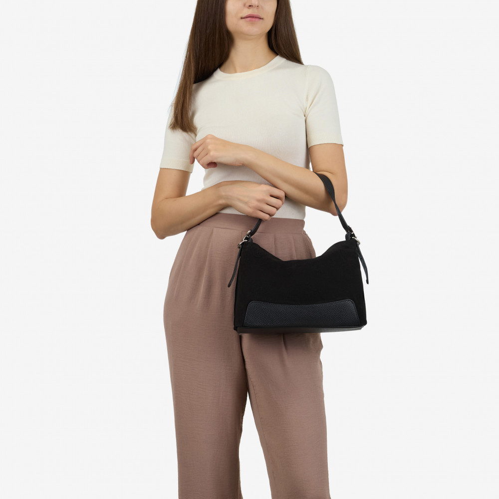 Сумка через плече (крос-боді) середня Regina Notte Black Шкіра флотар, Замша - 278360