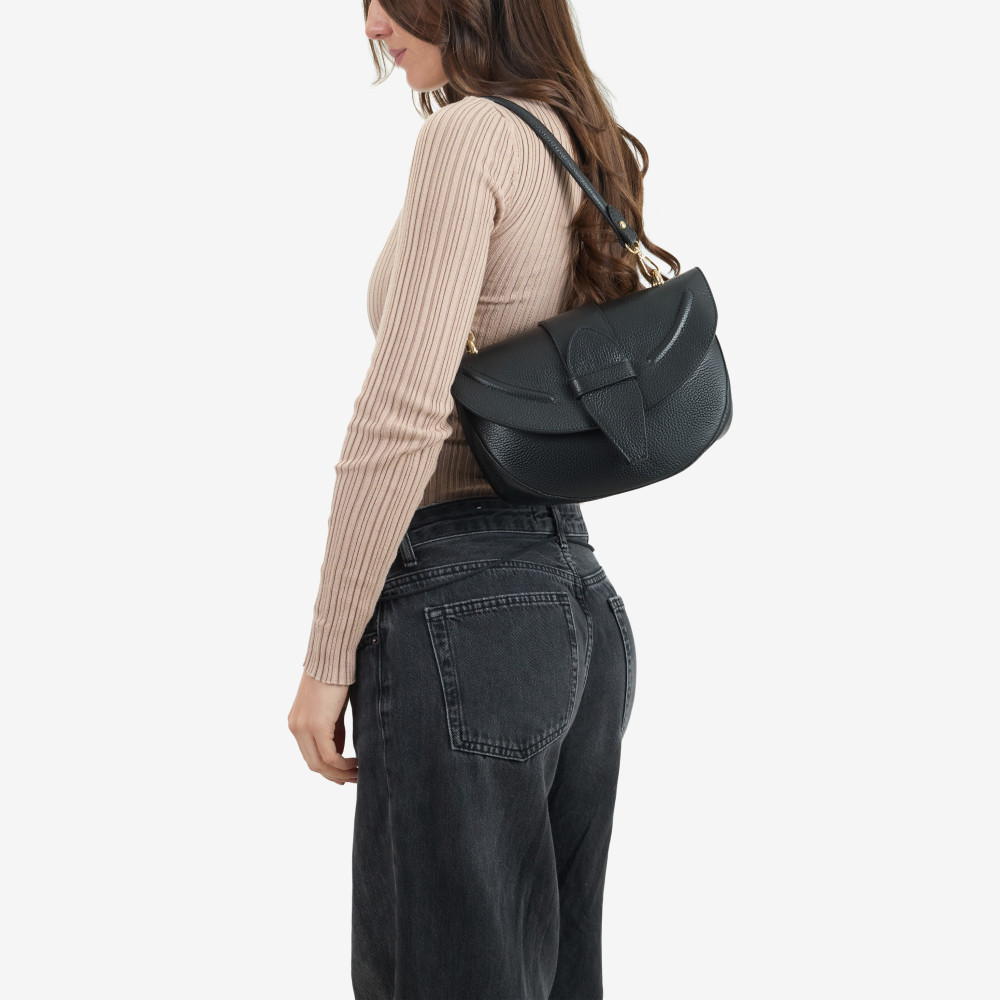 Сумка через плече (крос-боді) середня Regina Notte Black Шкіра флотар - 285658