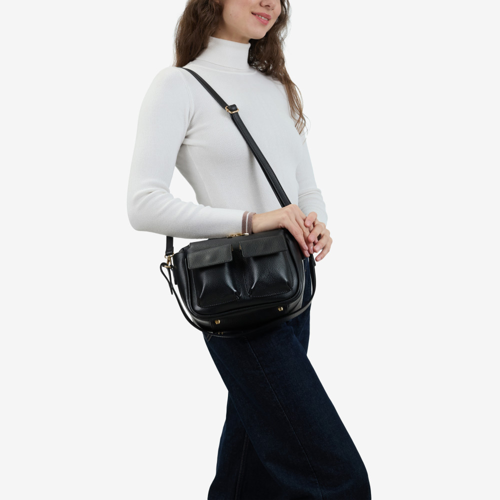 Сумка через плече (крос-боді) середня Regina Notte Black Шкіра флотар - 286082