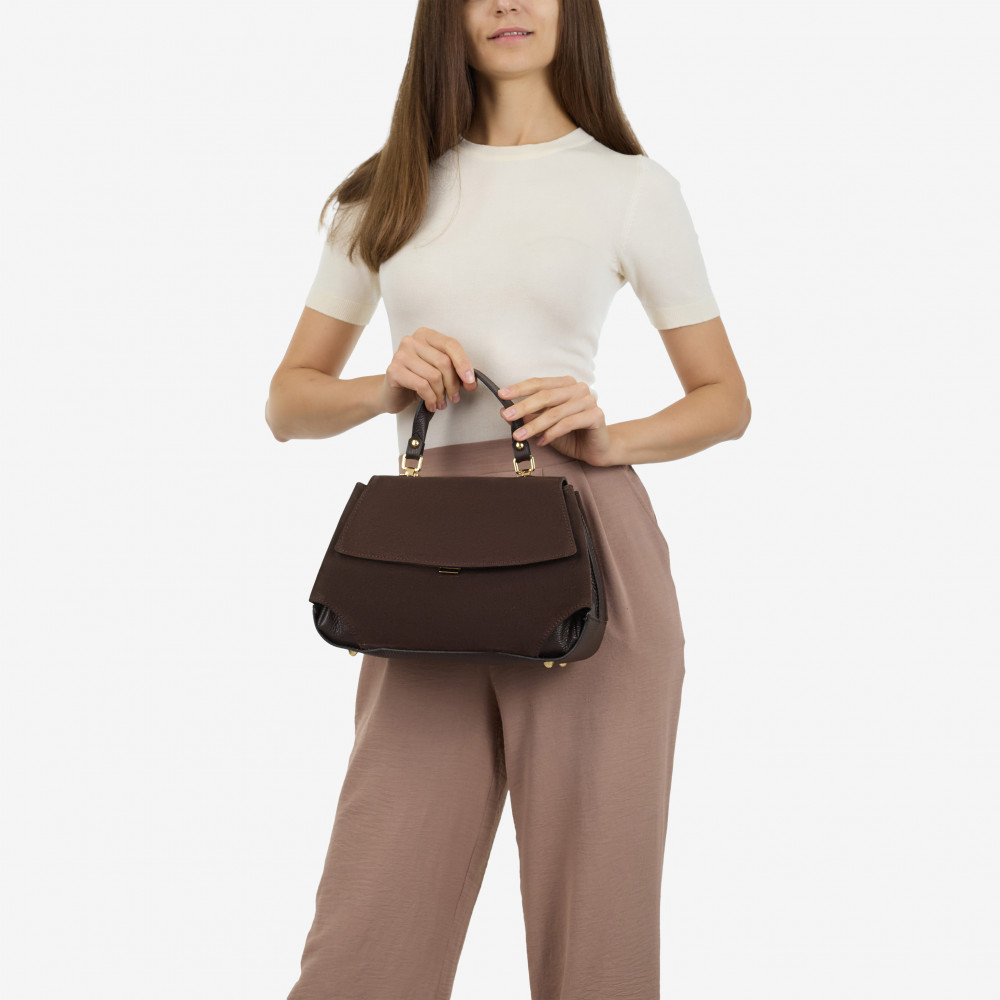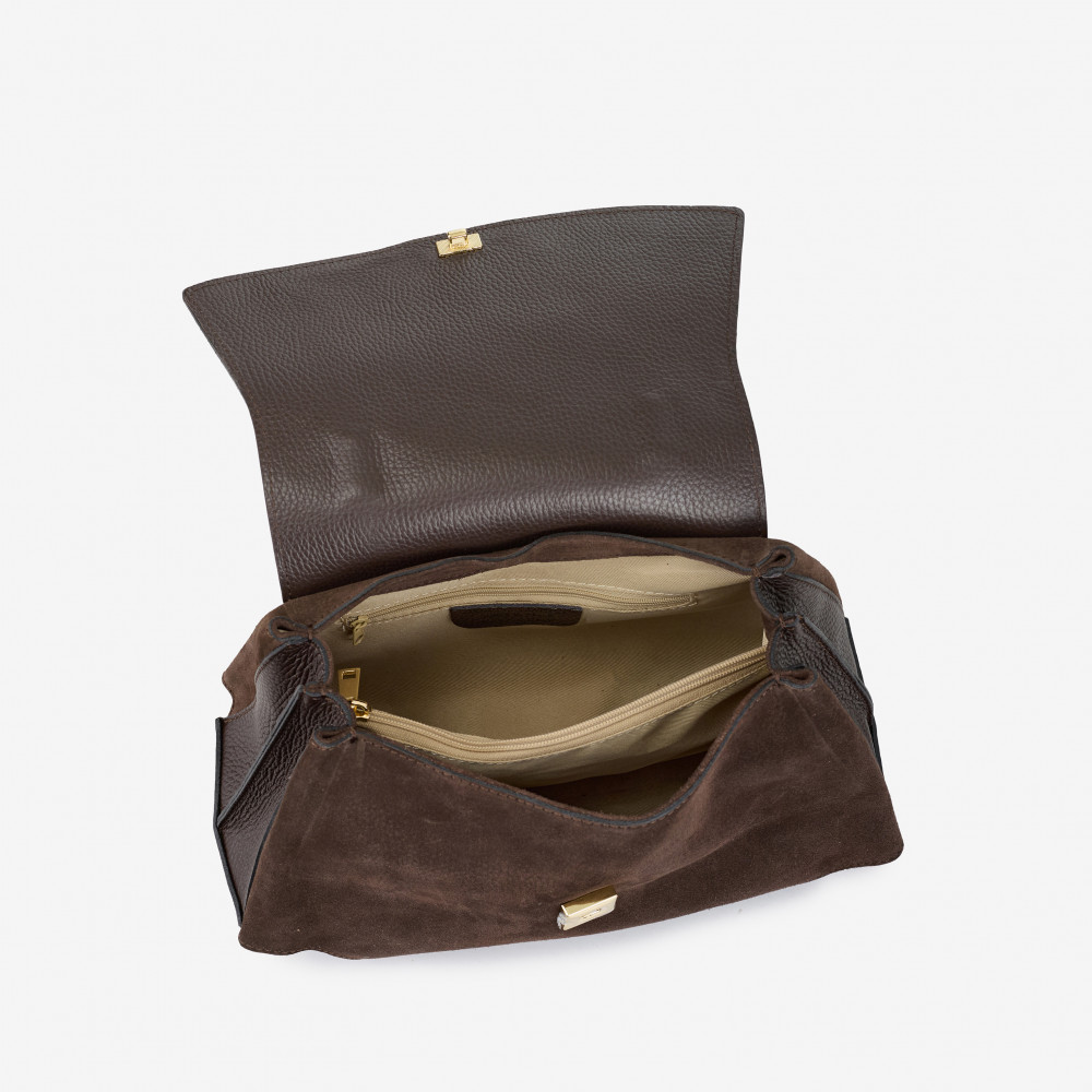 Сумка через плече (крос-боді) середня Regina Notte Chocolate Шкіра флотар, Замша - 275079