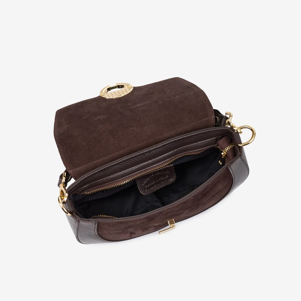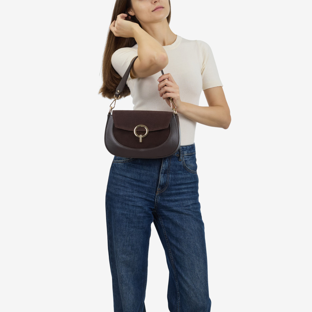 Сумка через плече (крос-боді) середня Regina Notte Chocolate Шкіра флотар, Замша - 282237