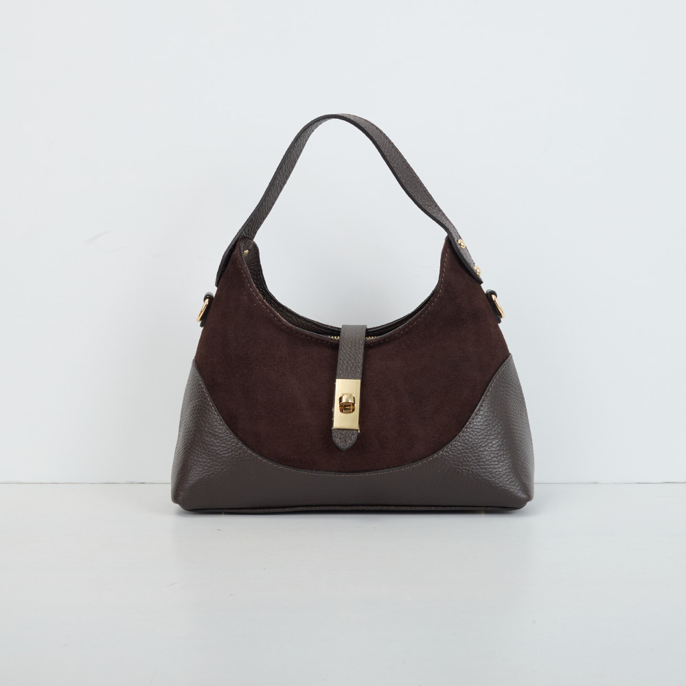 Сумка через плече (крос-боді) середня Regina Notte Chocolate Шкіра флотар, Замша - 285580