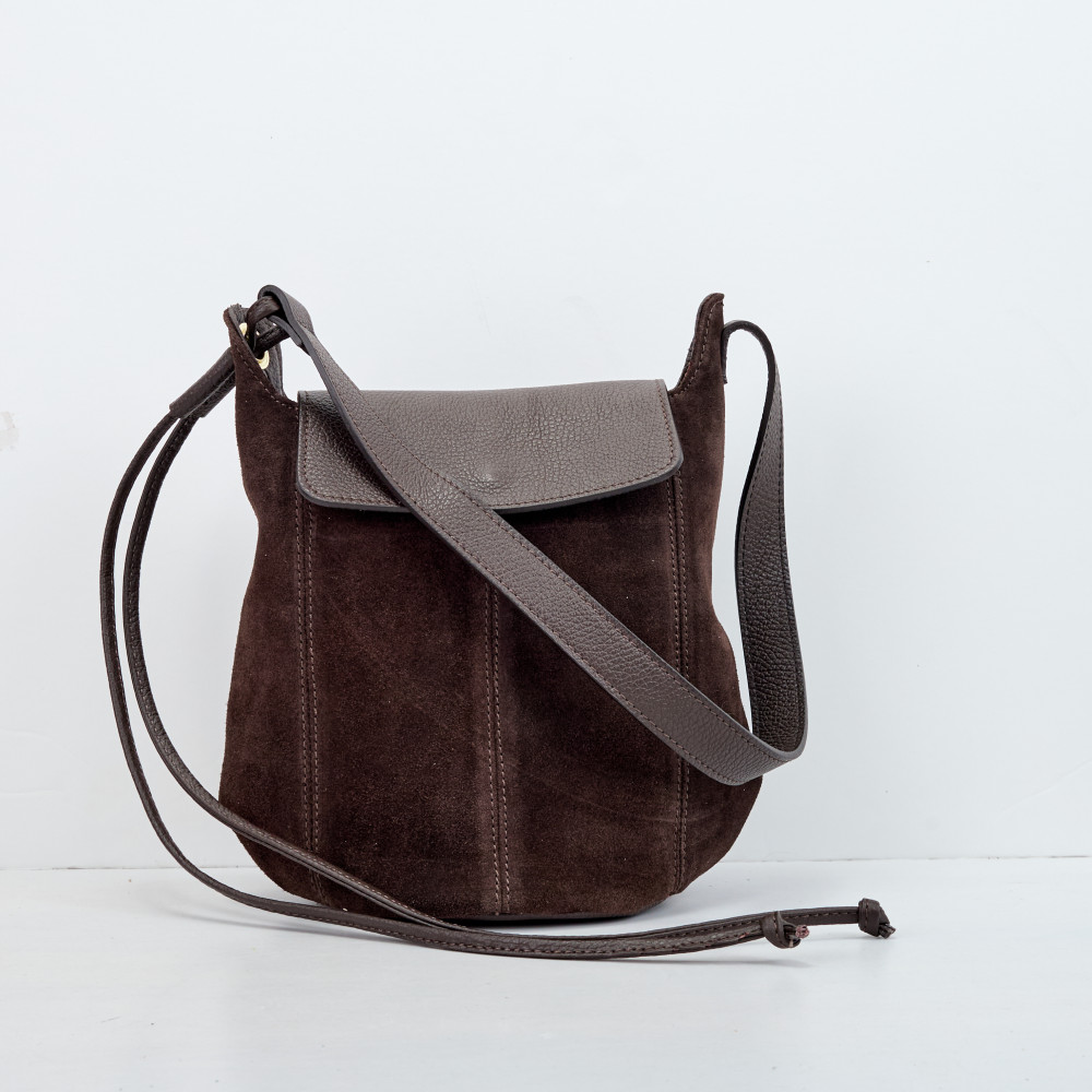 Сумка через плече (крос-боді) середня Regina Notte Chocolate Шкіра флотар, Замша - 290683