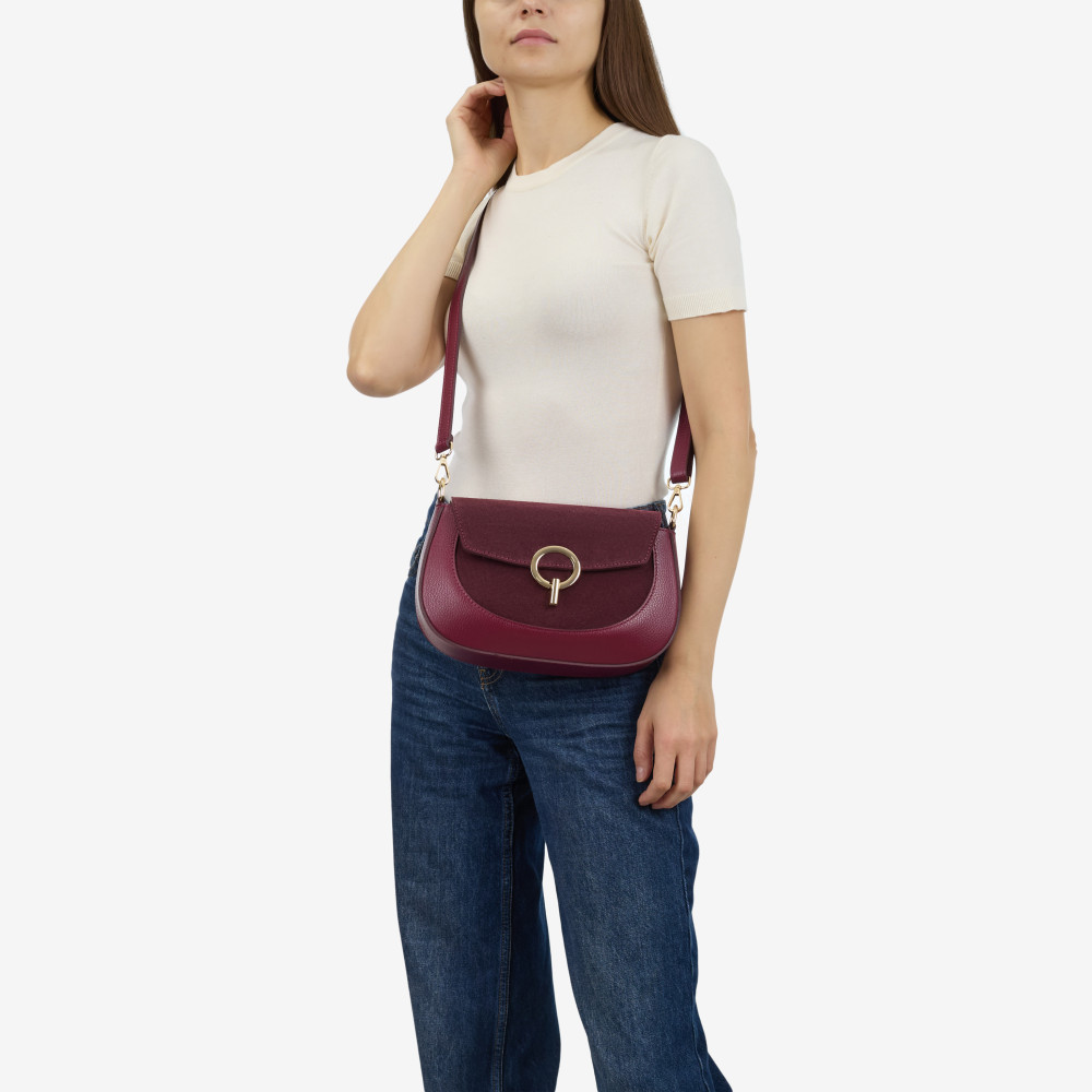 Сумка через плече (крос-боді) середня Regina Notte Wine Шкіра флотар, Замша - 282268