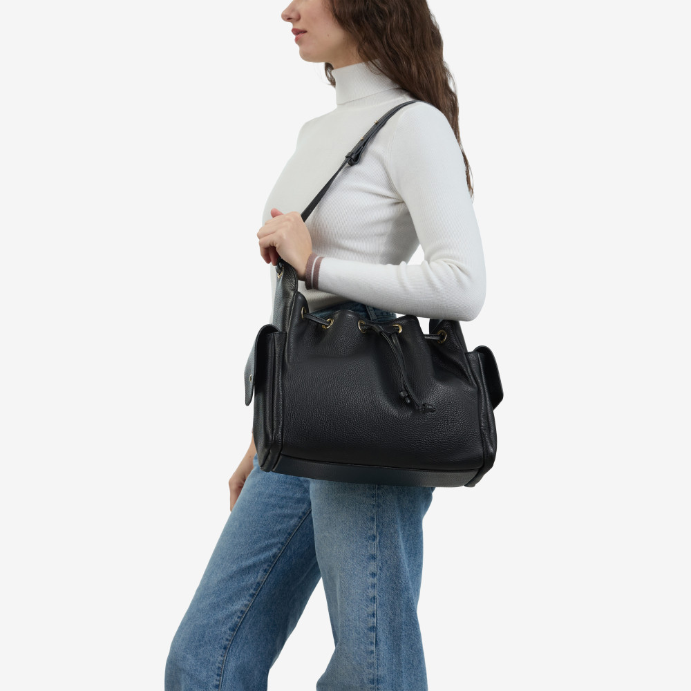 Сумка через плече (крос-боді) велика Regina Notte Black Шкіра флотар - 286044