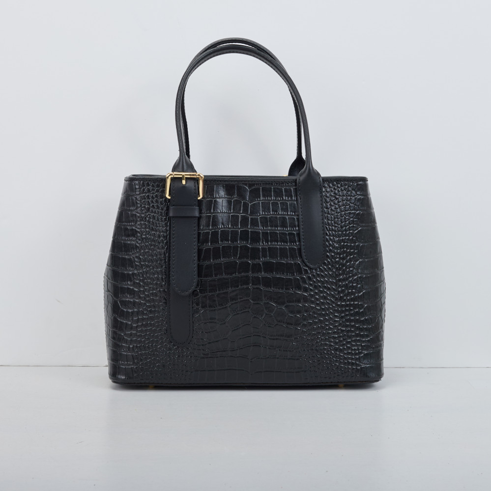 Тоут середній Regina Notte Black Шкіра тиснена "Крокодил" - 287386
