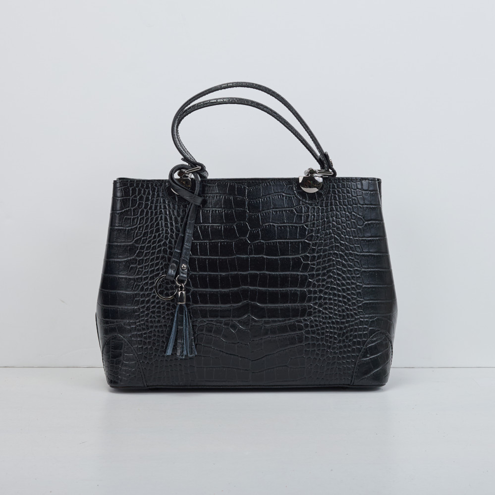 Тоут середній Regina Notte Black Шкіра тиснена "Крокодил" - 287713