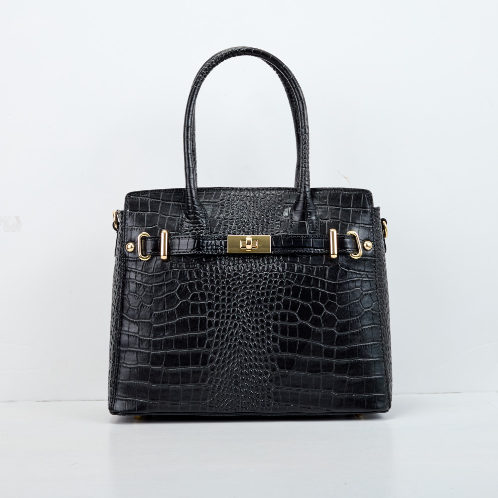 Тоут середній Regina Notte Black Шкіра тиснена "Крокодил" - 290638